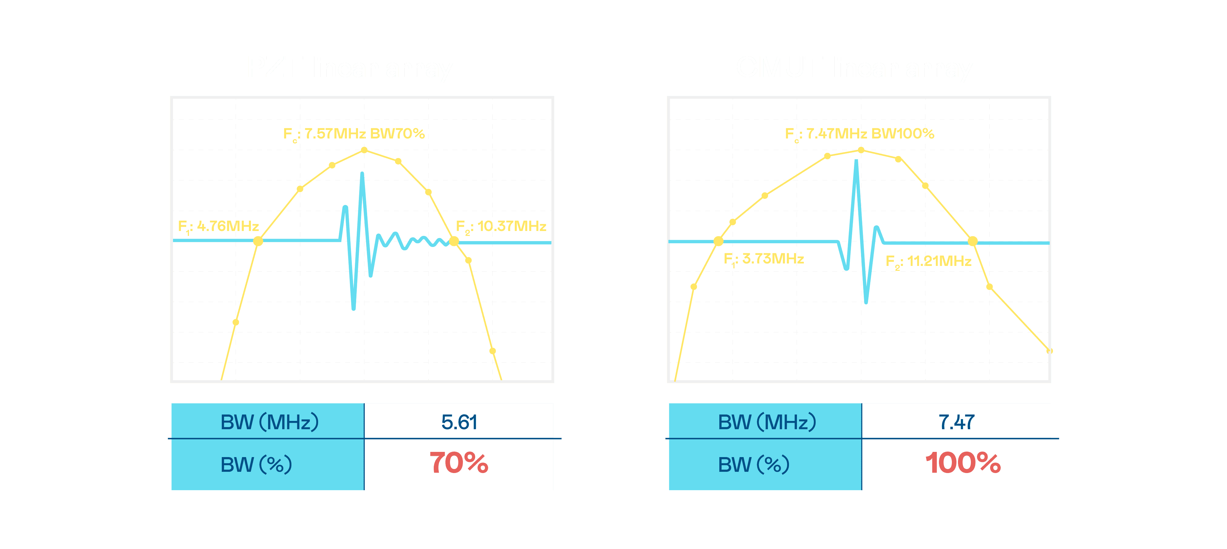 超音波影像的解析度高低,,,首先取决于探头能发出的讯号频宽。。。。2468BET CMUT 可提供高清晰的超音波讯号,,,提供高频宽、、、高灵敏度、、、、影像纹理细节更高的超音波影像,,协助医护人员缩短影像判读时间及利用精准的医疗影像进行诊断。。。。