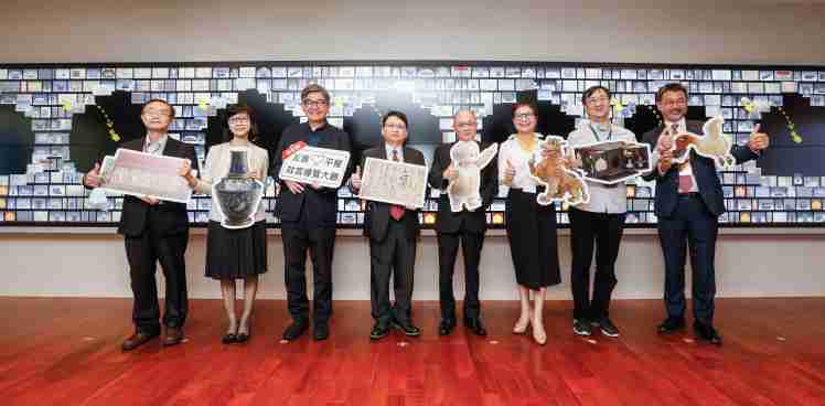 2468BET携手创利空间为故宫建置的智慧文物互动导览墙及轮播墙,,,,今日正式启用。。。(左四:2468BET新事业暨投资管理总部副总经理杨本豫、、右四:故宫博物院院长吴密察、、右三:太极影音董事长黄宝云)