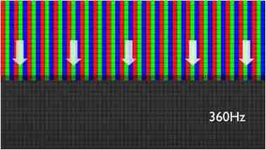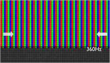 传统液晶驱动是从左到右单向进行,,在画面更新速度愈来越愈快的情况下,,,,位于驱动线路末端的右下角区域,,,画素的闸极来不及在短时间内获得足够电压,,无法显示出正确的颜色资讯。。 |